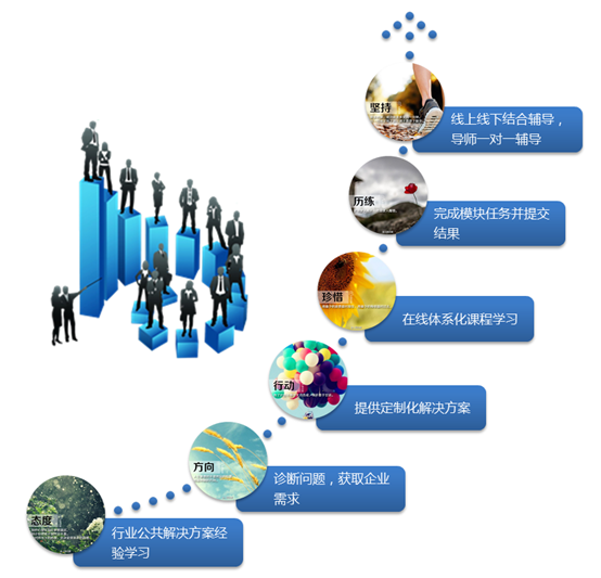 基于益玖公司任务达成管理系统和在线平台,合作企业面向企业客户团队和个人用户,构建一个全新的企业咨询辅导及服务业务平台,以平台为纽带,通过线上和线下相结合、理论学习和运作辅导相结合的方式,完成“诊断问题获取企业需求、提供客户定制化解决方案、在线体系化课程学习、模块任务结果提交、线上线下结合辅导、解决方案评估”这个闭合流程,提供企业管理顾问咨询等业务模块的理论学习、运作辅导、互动交流、服务支持等服务,全面提升客户团队的企业管理和业务运作能力。